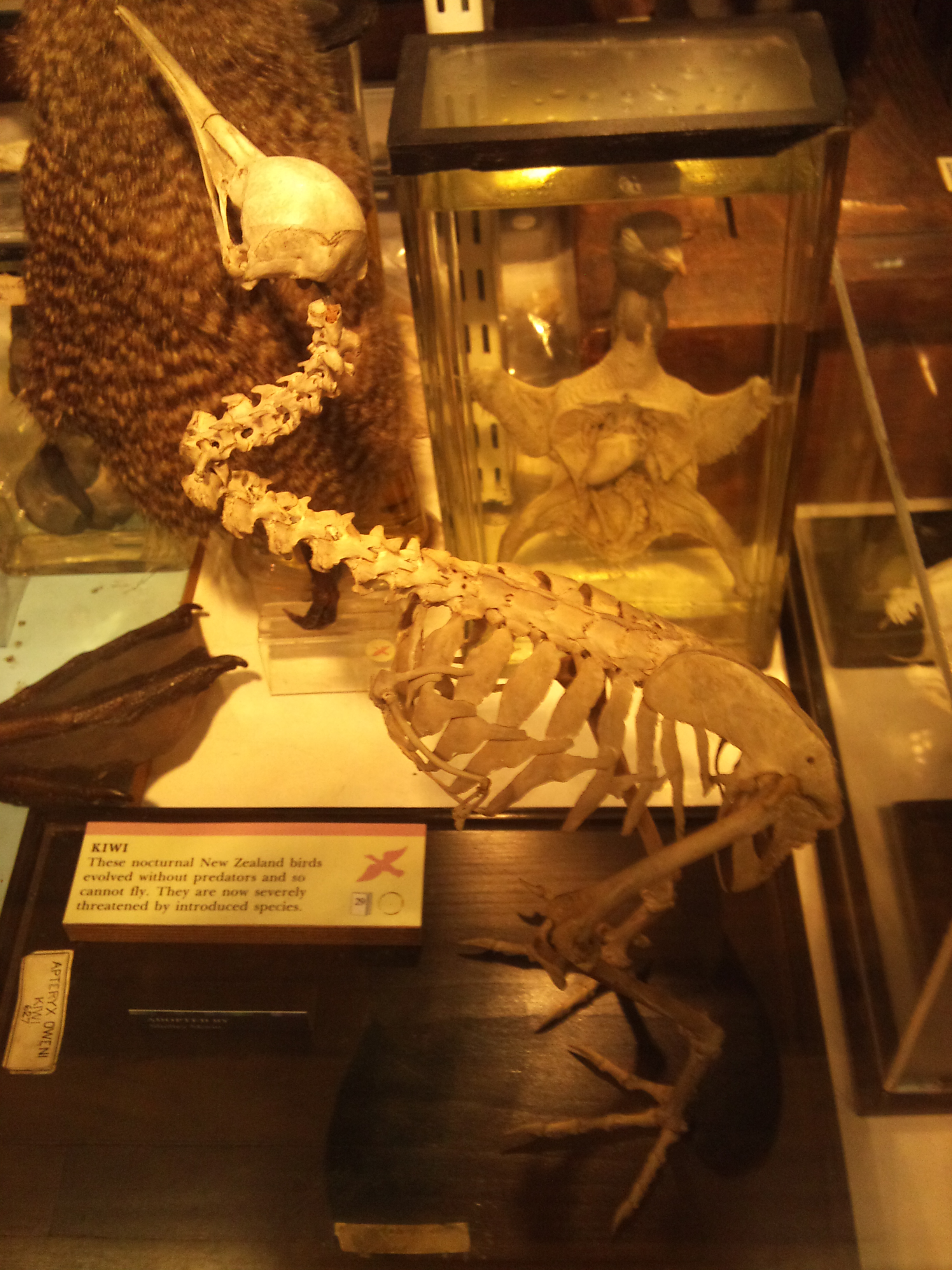If you happen to visit the Anatomy Museum to peruse plastinated poultry or oggle other oddities, save time for a stroll to the nearby Grant Museum of Zoology; one of London’s greatest natural history treasures (edit- see recent TetZoo blog post on this) — and one that is drenched in history. Great flightless bird exhibits, too, such as this kiwi: