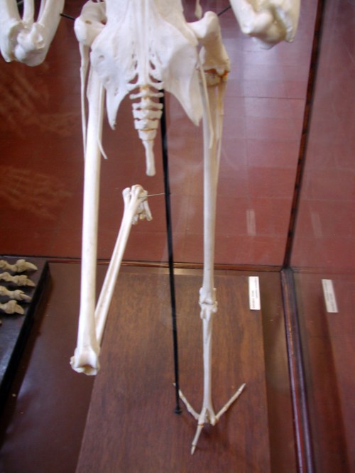 Nearby there is an ostrich pelvis for a similar comparison as in the latter post. And not far from that is a nice view of an ostrich foot, along with other birds’ feet in a display on perching/pedal adaptations:
