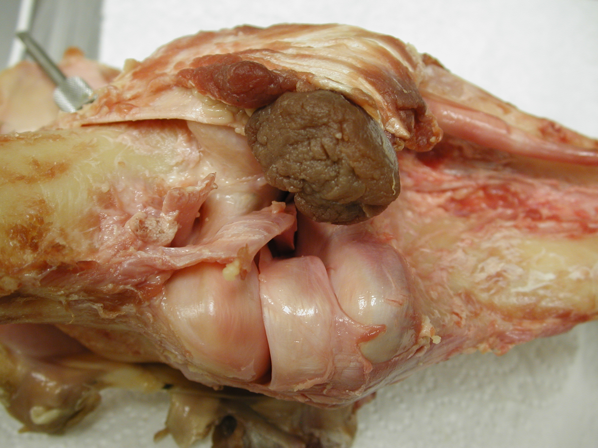 The gigantic medial meniscus, as well as the lateral meniscus/ligament that holds the fibular condyle in a sling when the knee is strongly flexed, is also sort of a clue. No one has ever measured it, but to my eyes this group of animals has a larger set of menisci than a mammal of similar size would.