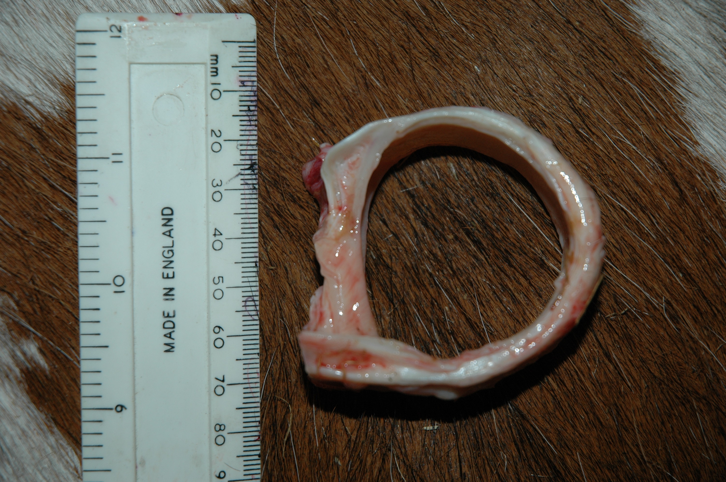 Cross-section of trachea (windpipe). A narrow tube should give less dead space to move in/out with each breath, so it makes sense for such a huge, long-necked animal to have such a thin trachea.