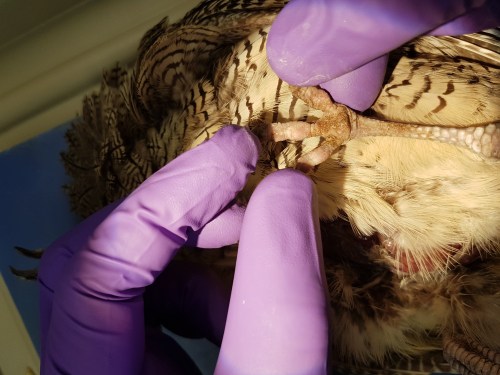 Tinamou foot. I did know that tinamous don’t have a hallux; big “perching toe” (1st/”big toe” in us); true of ratites/palaeognaths more generally. Unlike a chicken or many other birds. Just the three main toes (2, 3 and 4) are here.