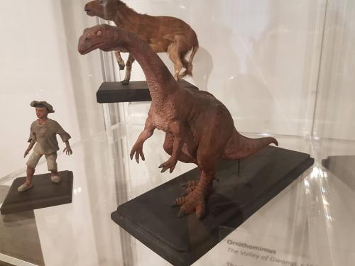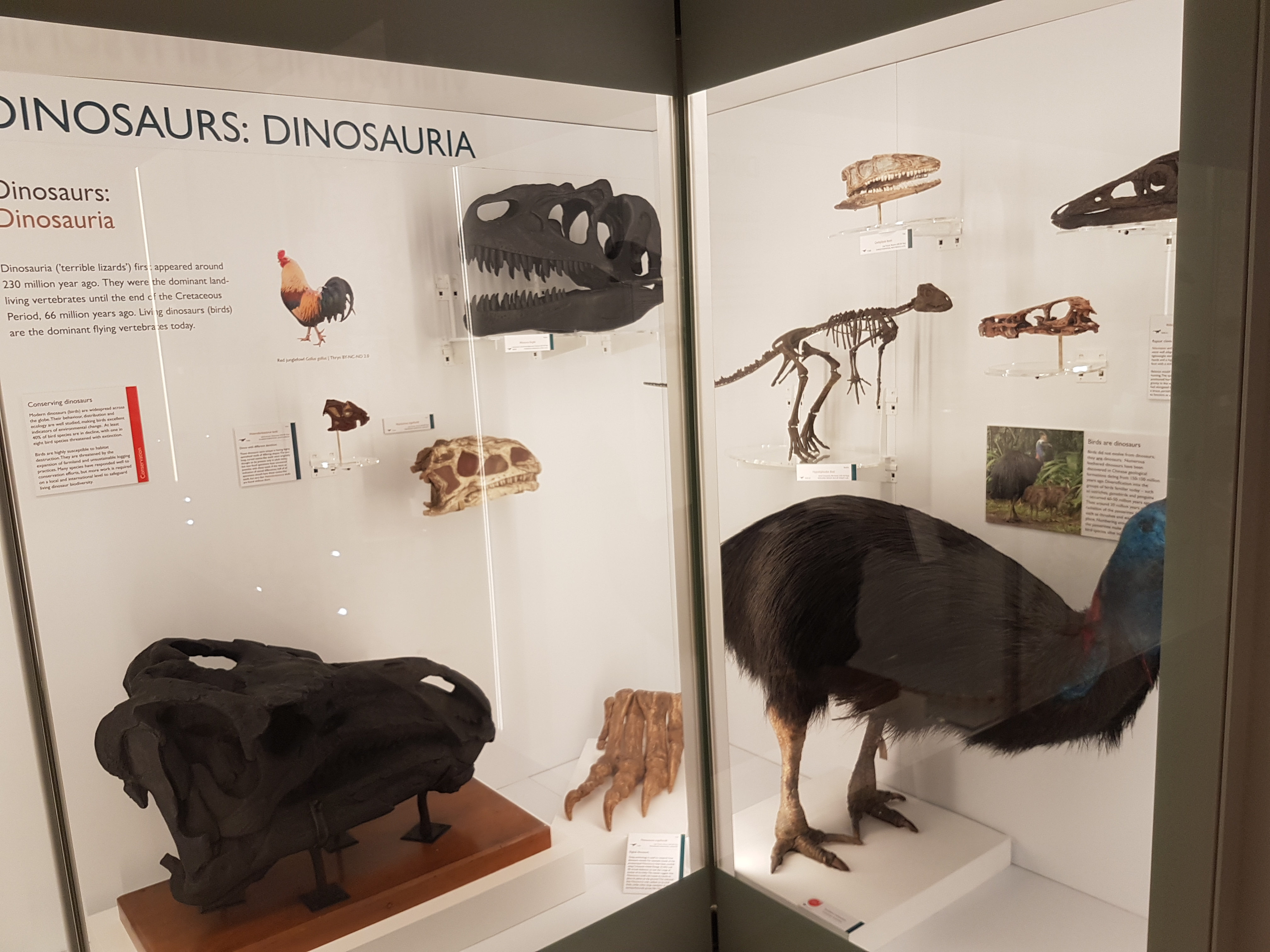 Ostrich skeleton up close, amongst the mammalz.