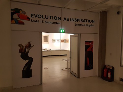 Quadrupedal human at Zoology museum entry.