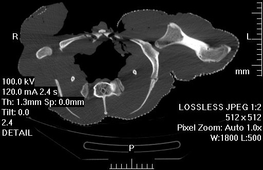 Figure 4: A look into some of the nuts and bolts of the 3D model we created. Tri-colored axes demarcate where the joint centers are in the proximal aulacophore.
