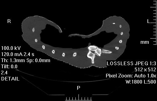 First, we used a micro-CT scanner to image a fossil stylophoran. This outputs a digital 3D picture of the stylophoran fossil that we can look at and analyze on a computer. Next, we developed a program to calculate the joint centers- the point at which one skeletal structure rotates relative to another-within the digitized stylophoran’s aulacophore (Figure 4). This created a digital marionette– a rig of our stylophoran fossil that flexes at the junctures between aulacophore segments as it would have in life. We then rotated each segment at the joint center to calculate the aulacophore’s total range of motion– a reconstruction of how far the aulacophore could flex in each direction (Figure 5).
