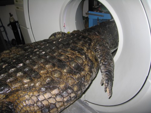 And this handsome Emperor penguin, going through the Equine Imaging Centre’s CT scanner as I do my usual routine of (1) get cool critters, (2) barrage them with radiation to peek inside: