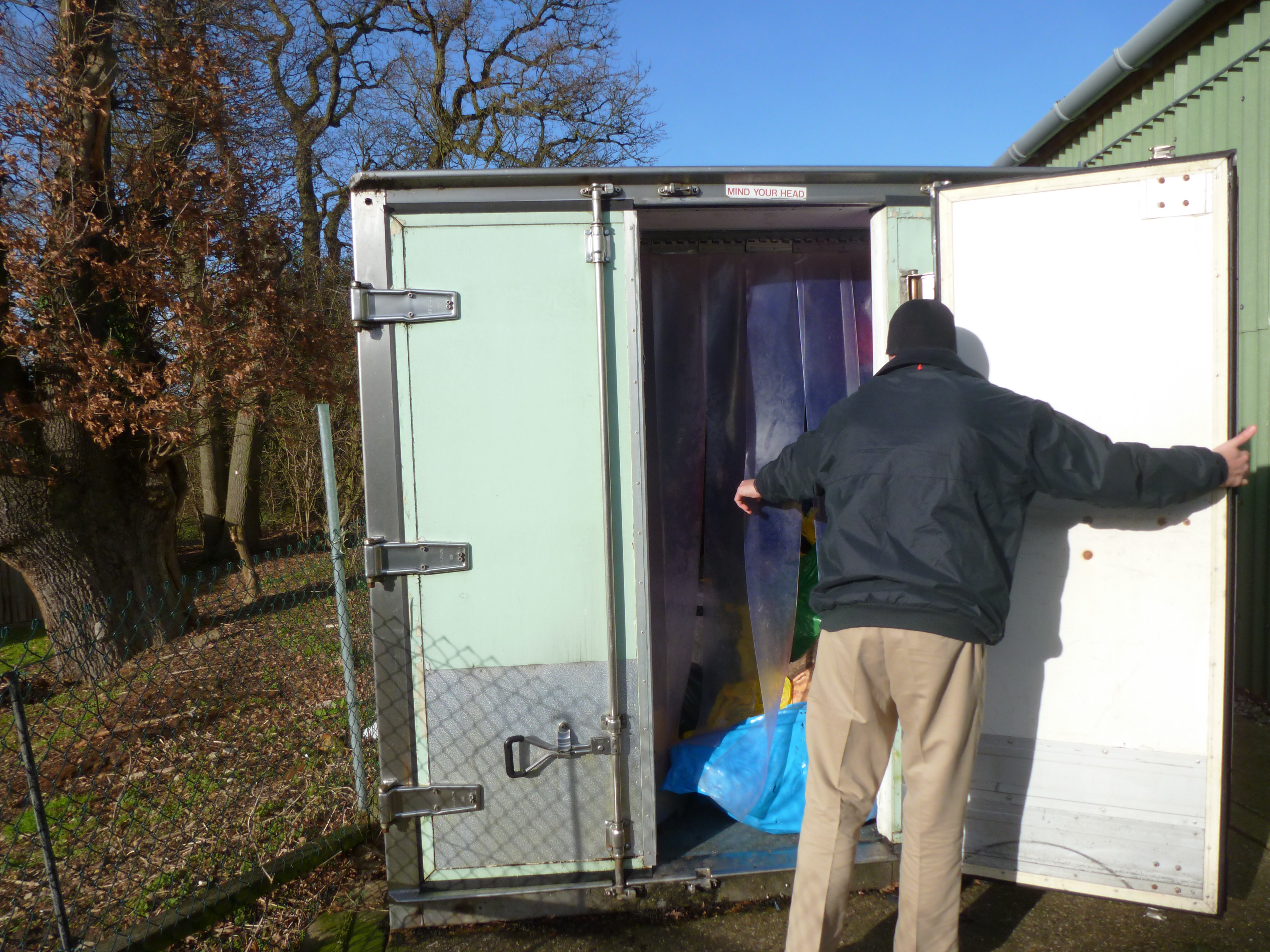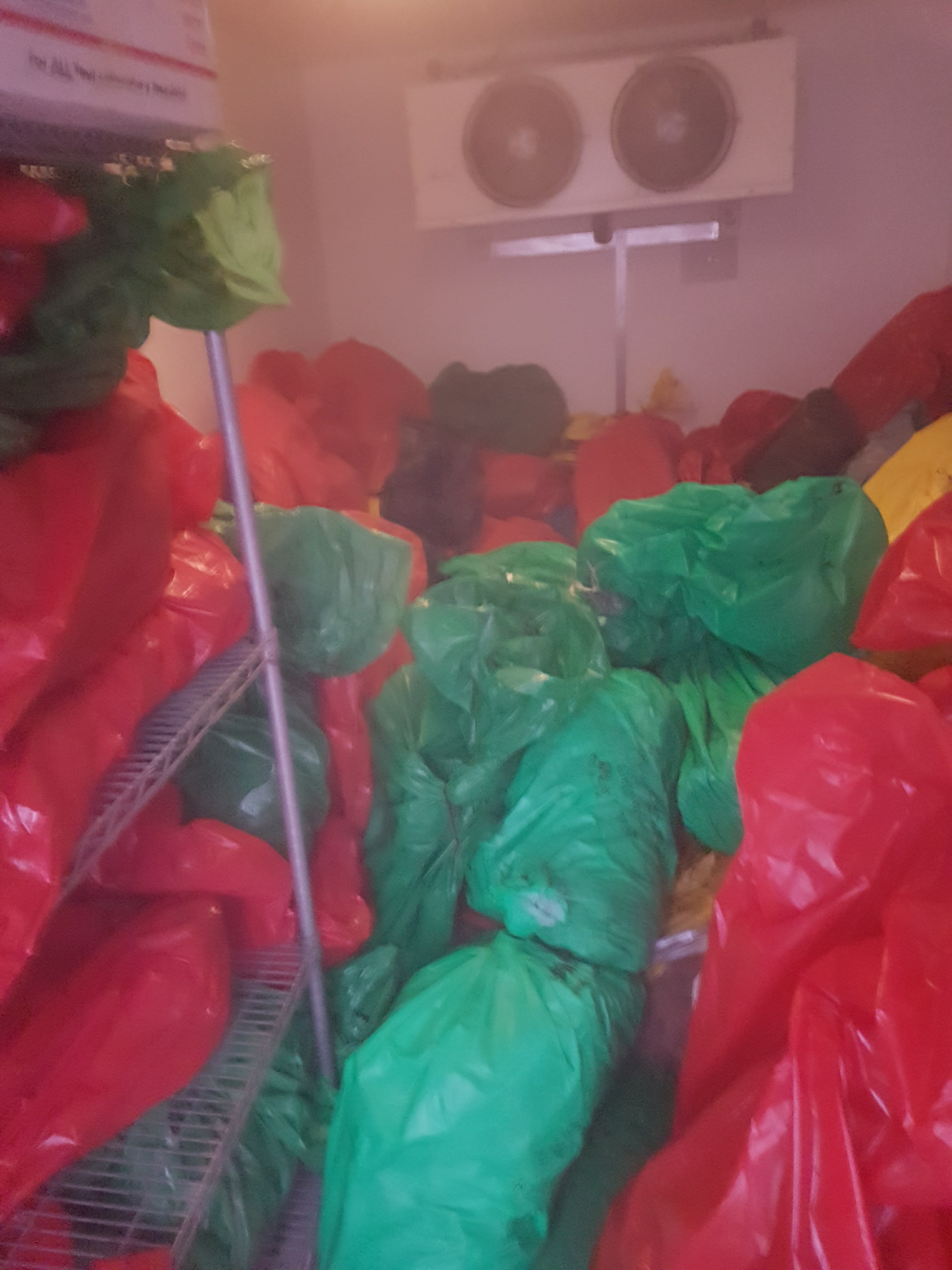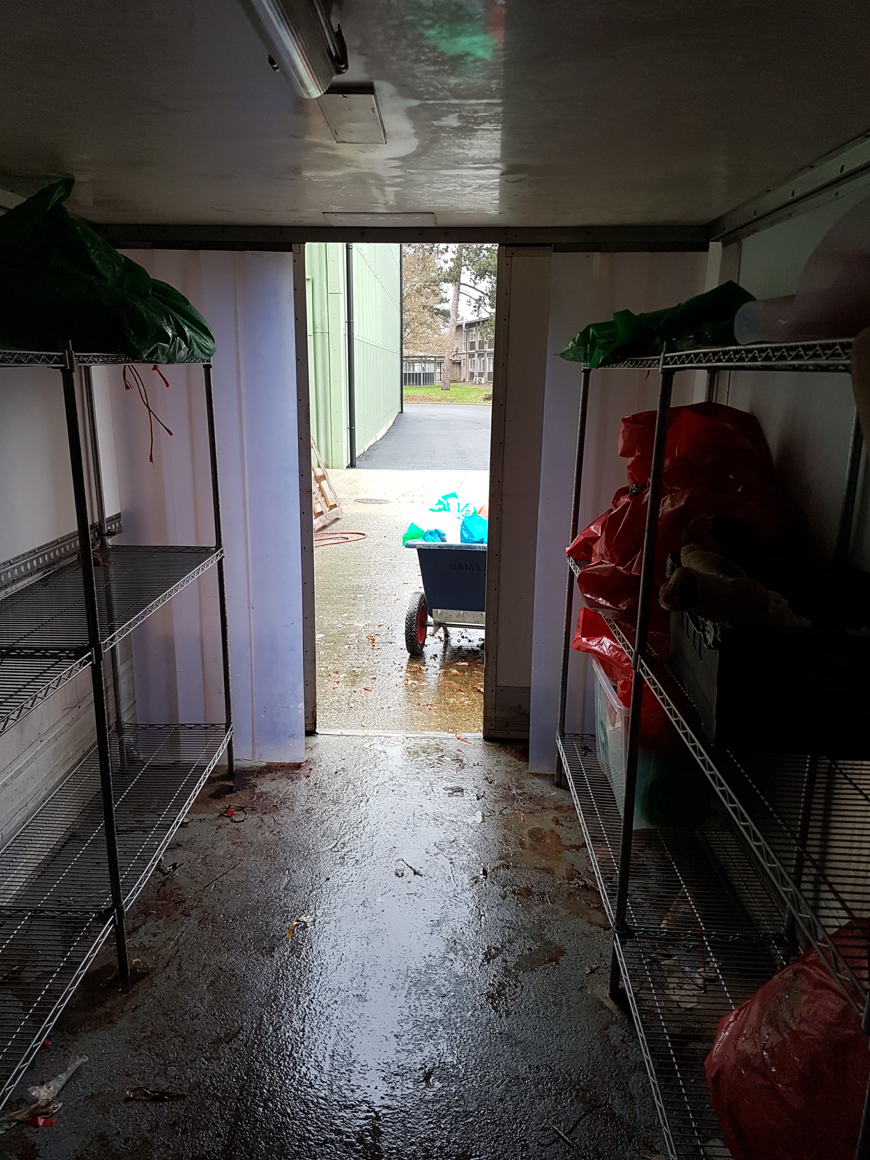 Freeezersaurus 2 has been mostly vacated now; and Freezersaurus 3 is in place, with the contents shifted– and a mad rush in action to get rid of (boil down + varnish bones of) as many specimens as I can! I have way too many… of course, mostly elephant bits. Here are the last big bits left in Freezersaurus 2; we are intimidated to move them…