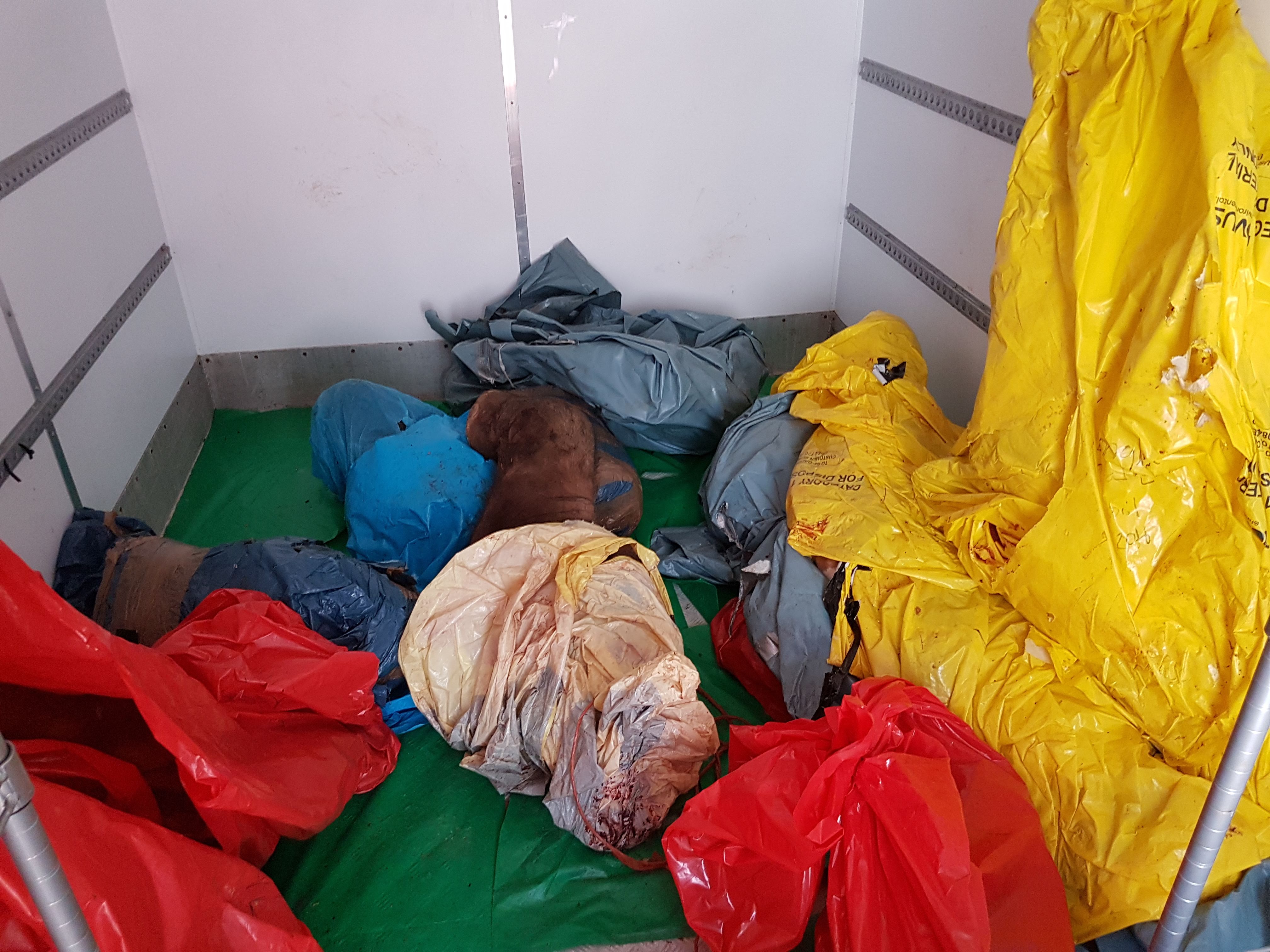 Freeezersaurus 2 has been mostly vacated now; and Freezersaurus 3 is in place, with the contents shifted– and a mad rush in action to get rid of (boil down + varnish bones of) as many specimens as I can! I have way too many… of course, mostly elephant bits. Here are the last big bits left in Freezersaurus 2; we are intimidated to move them…