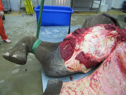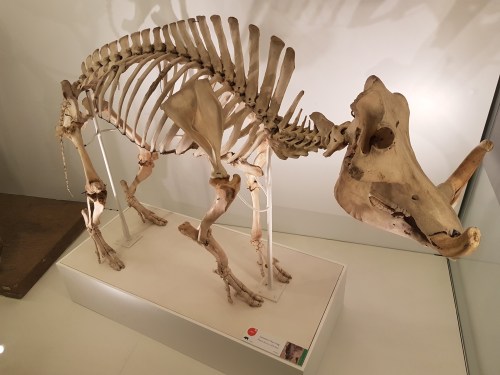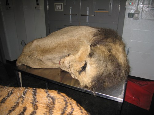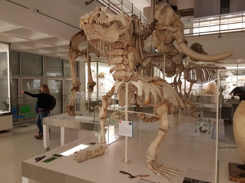 Go see the elephant. If you know basic anatomy, look at its leg muscles. Check out the huge triceps, still attached to the elbow; I like to say it is the size of a graduate student. Same for the analogous superficial gluteal and somewhat-fused biceps femoris muscles on the rear end, around the thigh/knee joint. Huge! I’ve never been able to view a standing dissected elephant, so this really impressed me more than a table full of giant muscle slabs like I normally deal with. And best of all, for me, the “false sixth toes”; the prepollex and prehallux; are visible in all four feet (but not noted anywhere, even in the book; too bad, these things were widely known by anatomists before my work on them). So much to marvel at here. It is an anatomical treasure. I wish I had a 3D image of it to use for anatomical studies- it was so easy to identify every single muscle group (except for a few missing around the shoulder/neck), even in the distal limbs. Hmm, photogrammetry might be possible (nugget of idea begins to crawl around John’s brain like a Zimmerian parasite)…