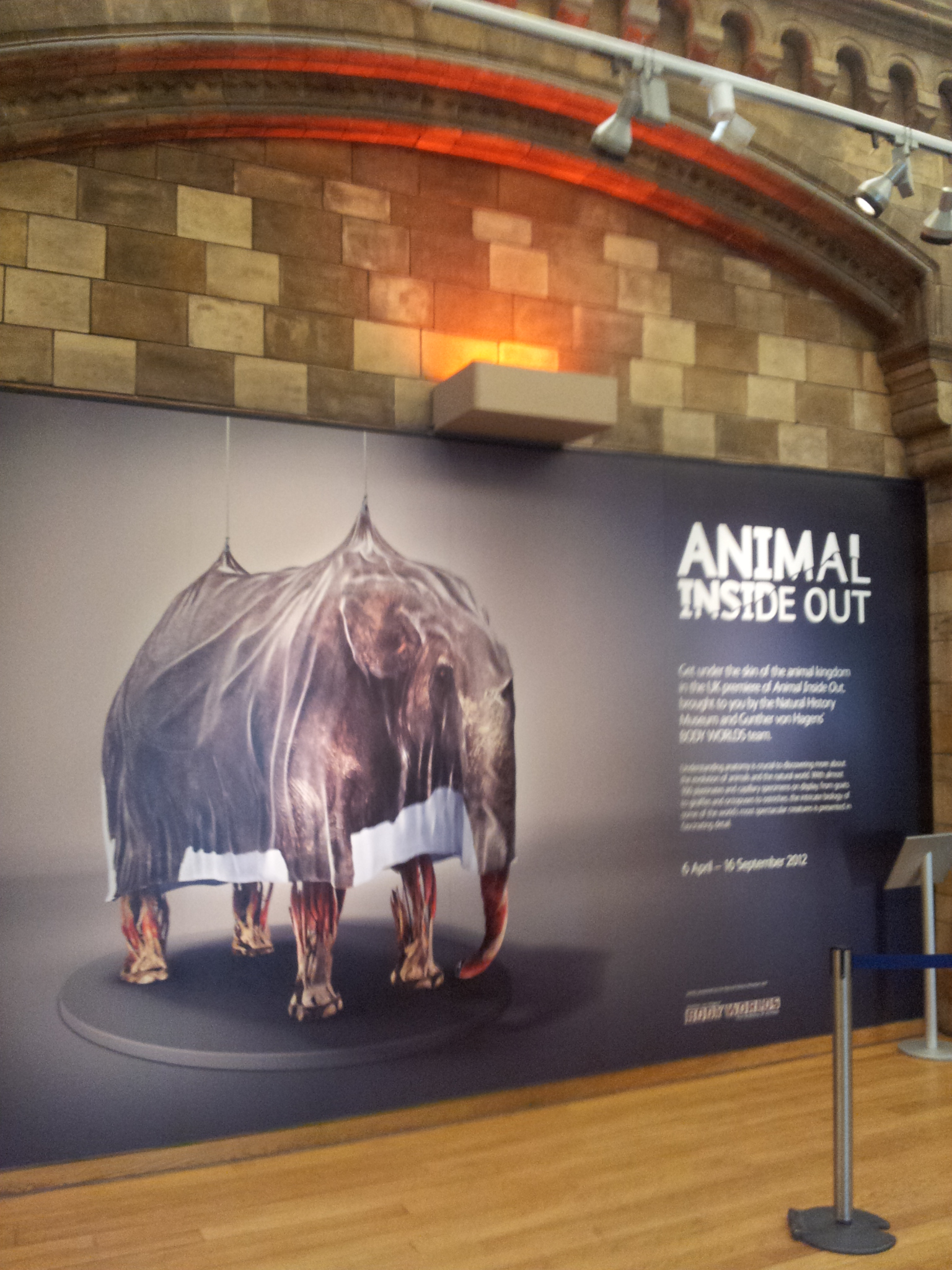 OK Londoners, and Olympics visitors, and anatomy (or just science/biology) buffs, and those not lucky enough to see other versions of the animal Body Worlds show. You have a mission. And that mission is to go see “Animal Inside Out”, a special (£9 for adults is well worth it!) exhbit at the Natural History Museum, open until September 16. This blog will self destruct, very messily, by turning itself inside out in 5 seconds… Boom.