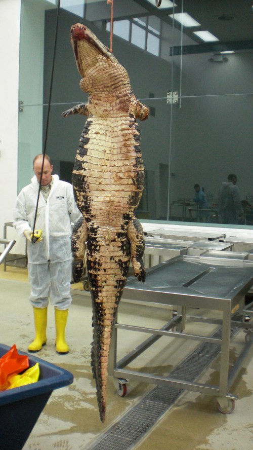I learned that goats have an extra tail muscle that allows them to swing up/down as well as side-to-side. Hey, I teach veterinary anatomy and I don’t know that!? I must tuck my tail between my legs in shame, but I am no goat so I do not think I can (do satyrs count?). But I wasn’t so sure that goats, as described, were the first animals to be domesticated—I thought that was dogs? Ahh, Wikipedia says dogs, then sheep, then pigs, then goats? I’m outside my expertise here, I admit, and resorting to Wikipedia out of ignorant desperation. Anyway, here, another instance of coulda-been-more-phylogenetically-specific presented itself: the forelimb of goats was said to be connected to the thorax by muscles and ligaments, not a joint, but this is a feature common to most Mammalia. Although audience attentions might be wandering at this point, waiting for the next big spectacle (goats and sheep are not a big crowd draw, even plastinated), some more care as to what was written would be good. Some reindeer and horses and other animals join in the fun later on. Good, but mostly ‘filler’ (wise to put these in the middle of the exhibit, after sharks/cephalopods and before climax) unless you’re a big fan of fairly familiar ungulates with fairly homogeneous postcrania. OK, my bias is showing…