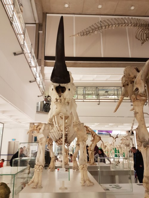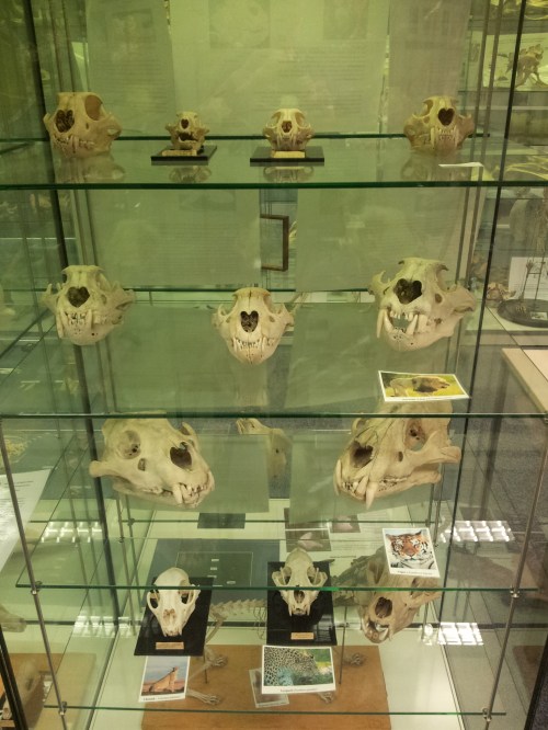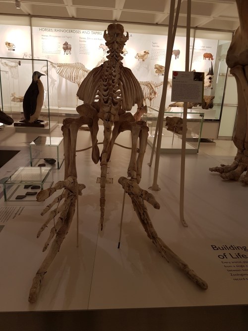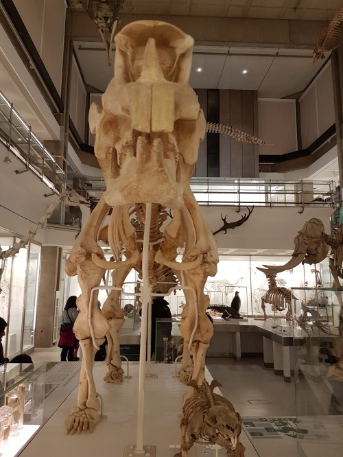 You can’t leave with your own photographs, but you can be schnookered into buying the exhibit book (£12.99) and a couple of packages of nice colour postcards (£4 for six; excellent quality images and cardstock IMO). The book and postcards show many of the exhibit specimens but not all, and include some others that are not on exhibit. I was saddened that the bear was left out—very cool image of that in the book. I’ve only skimmed the book a bit. I was annoyed by a few mistruths about elephants (25mph running speed, “have no ankle joints, which is one of the reasons why elephants cannot jump”, the bones “do not contain any marrow”—wrong, 15mph and there are ankles, they just are not very flexible (but not immobile either); also the bones do contain marrow (how could a large vertebrate survive entirely without it???) but just not as much of it per unit volume, due to lots of spongy bone). But I am still very happy with the 139 pages chock fulla pretty images, which is all I really wanted. Indeed, the book is a great pictorial anatomical reference- some of the species such as elephants and giraffe lack a really good anatomical resource in the modern, or any, literature! The exhibit shop also sells some good anatomy texts, mostly on humans but I recommend “Animal Anatomy for Artists” very strongly; I use that regularly in my own work.