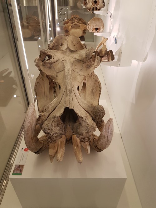 But I don’t want this post to grumble too much; wrong message. There was so much to celebrate in this exhibit, which was felt impressively spacious and full of cool specimens! Visitors pass some plastinated whole sheep and goats, with panels nicely explaining that goats and sheep look quite similar on the inside and are evolutionary relatives. Having “four stomachs” (technically, a four-chambered stomach; not four distinct organs that were duplicated) is attributed as a sheep trait, then being a ruminant is said to be a goat trait; this might get a little confusing for non—anatomists (both are ruminants and have similar stomachs).