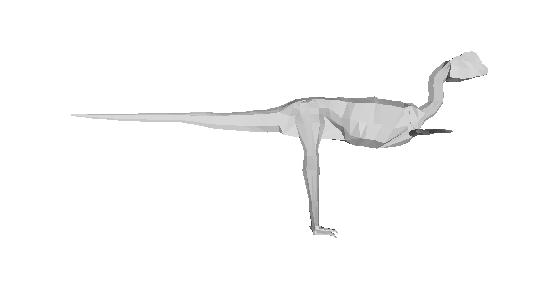 Above: Two of the 17 archosaur 3D models (the skinny “mininal” models; shrinkwrapped for your protection) that you can download and examine and do stuff with! Dilophosaurus on the left; Velociraptor on the right. Maybe you can use these to make a Jurassic Park 4 film that is better, or at least more scientifically accurate, than Hollywood’s version! 😉 Just download free software like Meshlab, drop the OBJ files in and go!