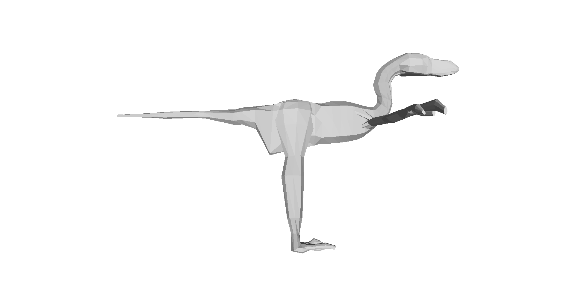 Our 3D computer models of a basal dinosaur and bird, showing methods and key differences in body shape. The numbers at the bottom are museum specimen numbers.