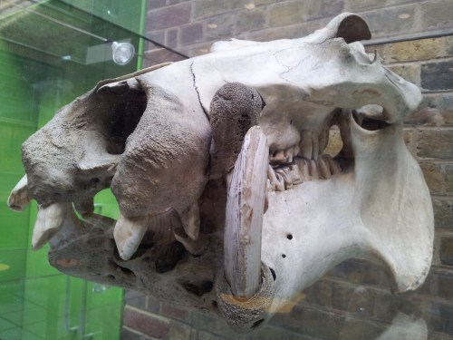A decent mount of a three-toed sloth is above; and below I’ll share several skulls including a second hippo (male? quite different morphology from the other one I showed):