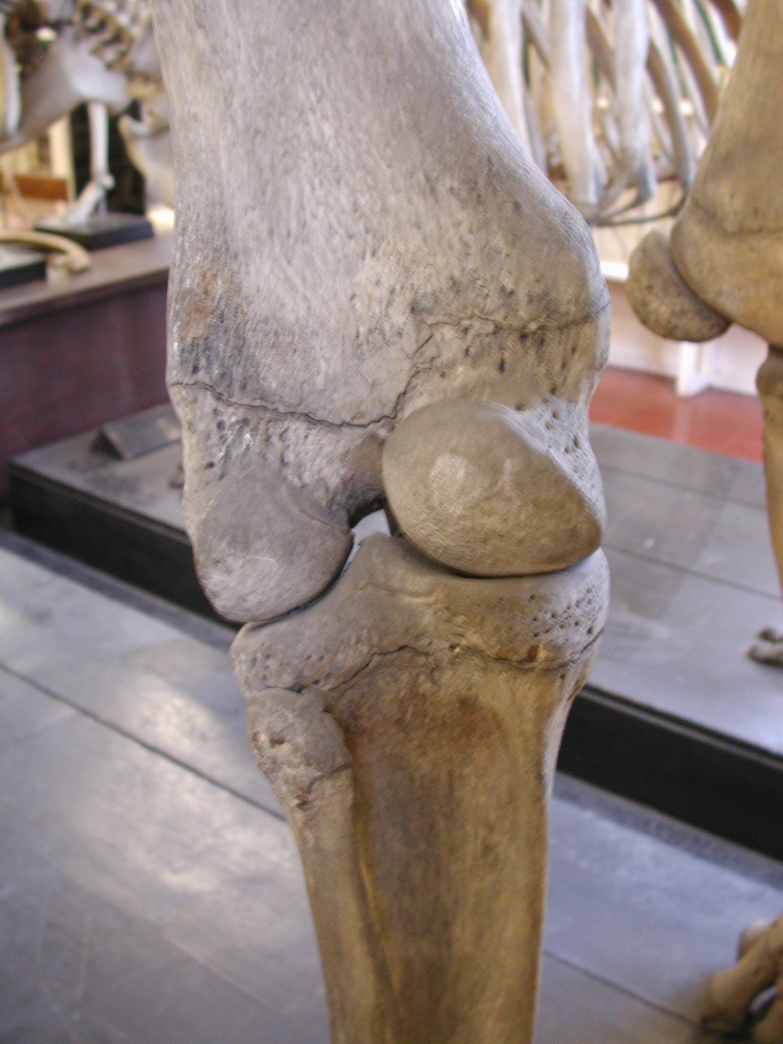 I’m going to continue on without providing longwinded interpretations. I’ll leave you to draw your own, and just enjoy the diversity of knee anatomy, with some surprises toward the end. Descending in the size scale from multi-tonnes to semi-tonnes, first, a rhino: