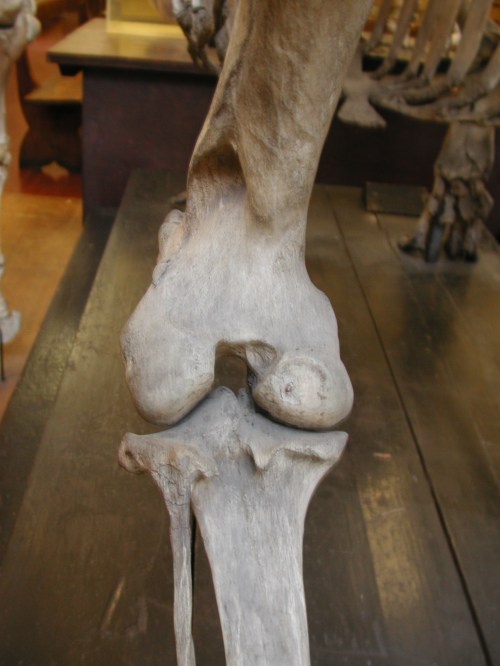 My off-with-their heads bias rears its ugly cranial appendage here, but I’ve already shown you its skull, so rest easy craniophiles; you had your day of glory. It’s time to kneel before Zod, or in this case kneel before my collection of animal knee photos! I hate to remind you of the trauma, but I did promise this with the mystery emu knee dissection, so suppress your PTSD [knee TSD?] and come along quietly now… Let an elephant knee soothe your tortured soul (from here on, all knees are left knees, in caudal/rear view):