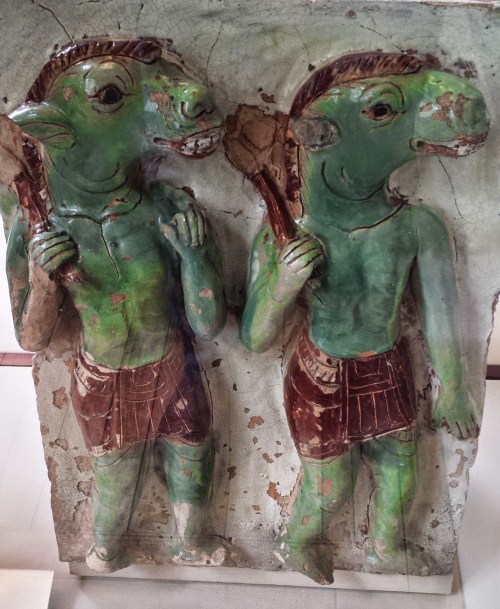 More dancing! North Chinese (~11-12th century) ceramic plate depicting a funky, vaguely humanoid dancing bear tied to a pole. The anatomical exaggerations here make the piece more memorable and vaguely demonic, but not so much as the next item.