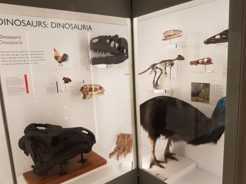 A final hall with a more new-fangled display, on the topic of evolution and extinction. Attractive phylogeny graphic here. Birds at the “top”, of course. Poor lowly mammals!