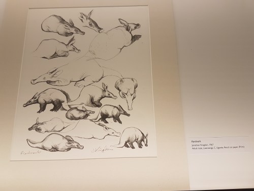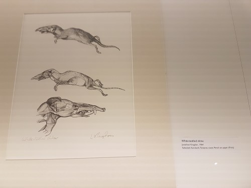 A nice surprise to see naturalist superstar Jonathan Kingdon‘s scientific illustrations and nature-inspired artwork displayed here. I’ve added photos of ones I liked the most.